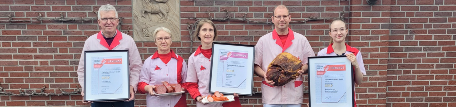 Unser Ziel ist es, Ihnen stets die beste Qualität zu bieten. Aus diesem Grund setzen wir nicht nur auf unsere eigene Schlachtung, um eine möglichst hohe Fleischqualität zu gewährleisten, sondern verwenden auch ausschließlich qualitativ hochwertige Produkte von der Produktion bis zur Reinigung. Wir arbeiten eng mit ausgewählten Lieferanten zusammen, wie zum Beispiel den AVO Gewürzwerken in Belm oder der Fleisch-Einkauf AG in Wallenhorst. Um unseren Qualitätsstandard aufrechtzuerhalten, führen wir regelmäßige Eigenkontrollen durch und nehmen regelmäßig an Produktwettbewerben teil.